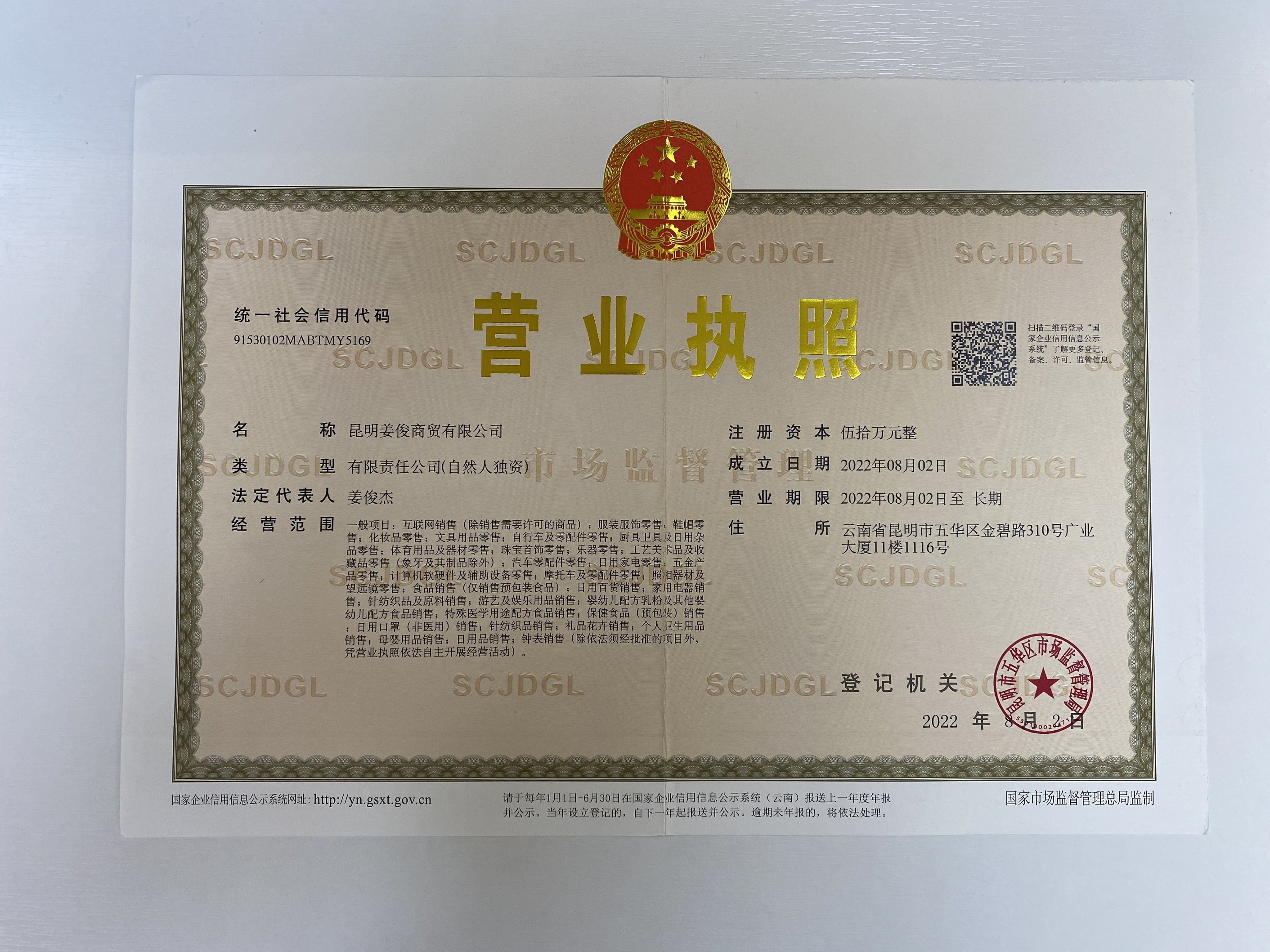 ชื่อบริษัท: คุนหมิง Jiangjun Trading Co., Ltd.